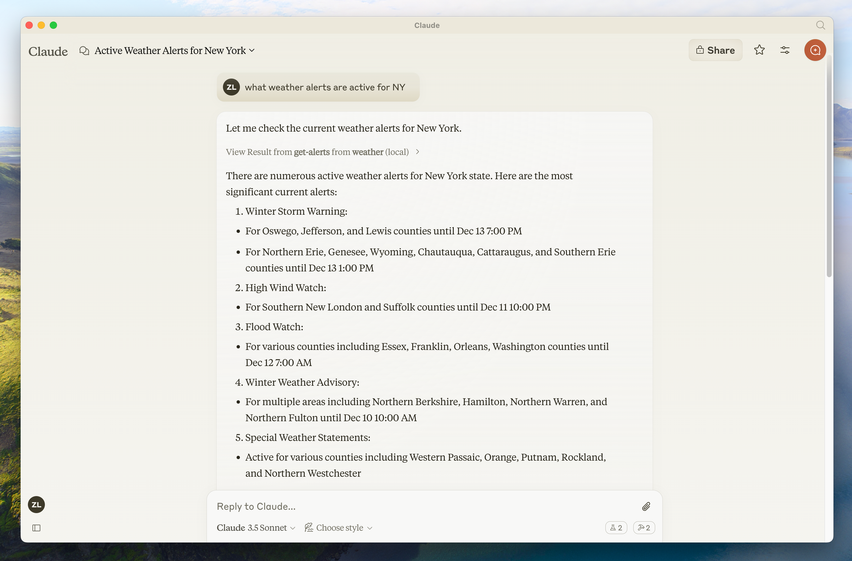 - Есть MCP‑сервер с именем «weather»
